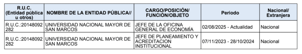 Además, Silva fue observado por la Contraloría General por irregularidades en su ingreso a la Oficina Central de Admisión (OCA); y a pesar de estos cuestionamientos, desde agosto de este año, logró reincorporarse al plantel, esta vez en la Oficina General de Economía.