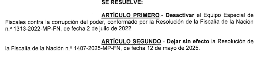 El Fiscal de la Nación, Tomás Gálvez, ordenó la desactivación de cuatro equipos especiales de investigación que venían procesando algunos de los casos más complejos y sensibles del sistema judicial peruano.