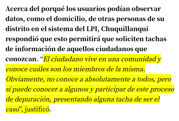 Chiquillanqui también mencionó que el padrón sirve para verificar si alguien está registrado en el mismo domicilio. Sin embargo, esto no tiene sentido con el diseño actual del sistema.