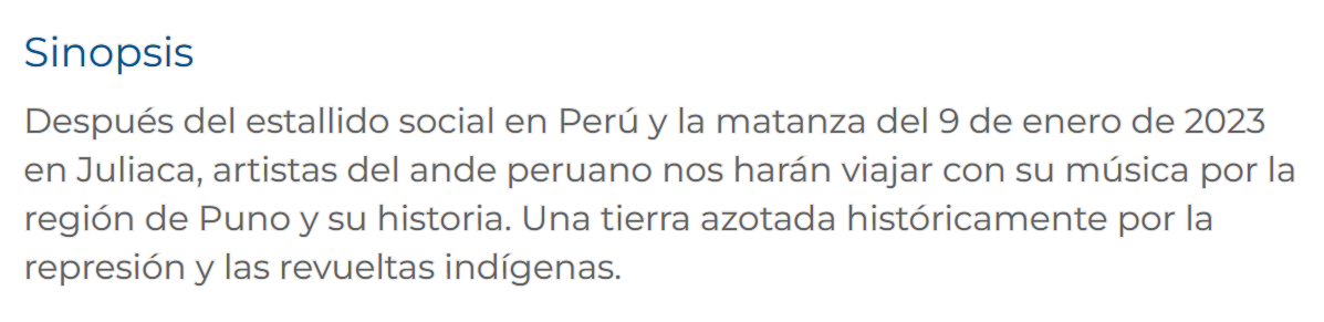 La sinopsis difundida en carteleras para la película documental Uyariy emplea un encuadre que puede despolitizar hechos de violencia y represión.