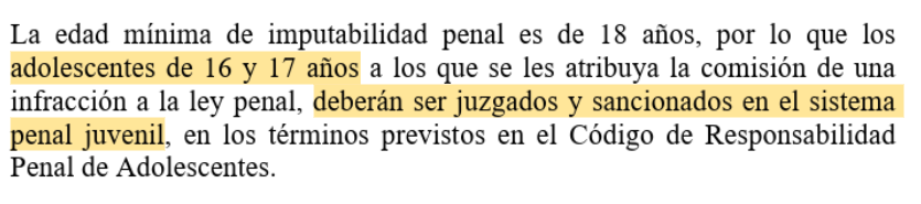 El Tribunal estableció una interpretación explícita de que la edad mínima de imputabilidad penal es 18 años. Por tanto, todos los adolescentes de 16 y 17 años, independientemente del delito cometido, deben ser procesados en el sistema penal juvenil regulado por el Código de Responsabilidad Penal de Adolescentes.